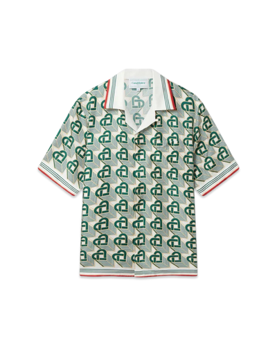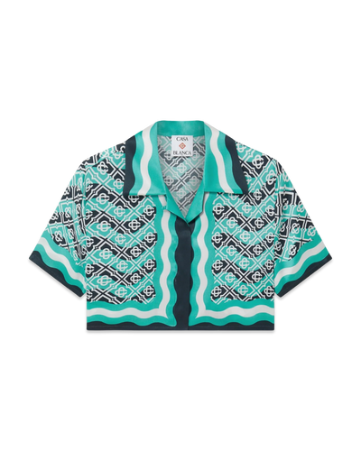 Casablanca Monogram Wave Cropped Short Sleeve Silk Shirt
